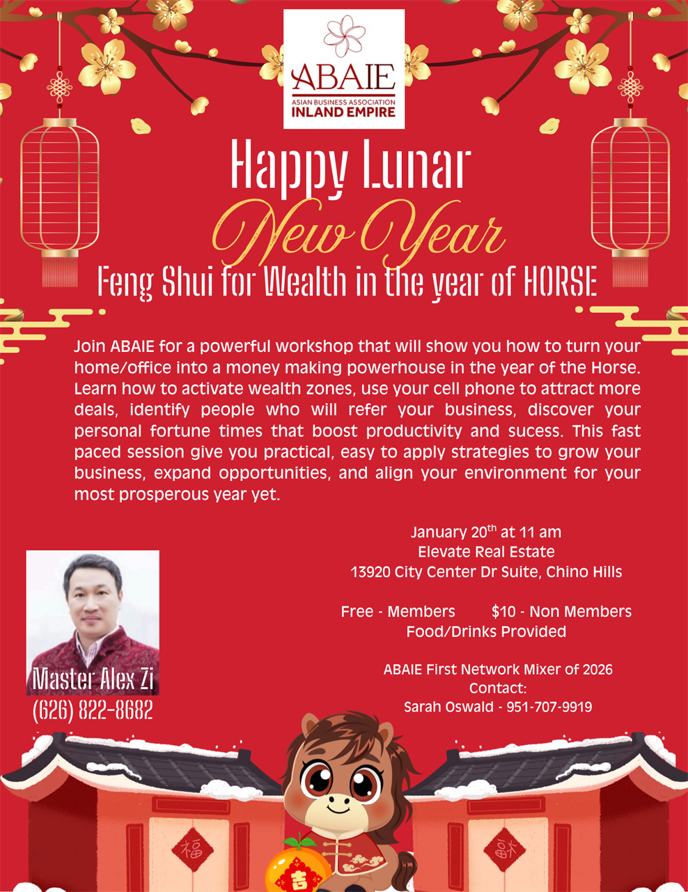 Feng Shui for Wealth in 2026 – ABAIE + Add to Google Calendar + iCal / Outlook export 00 days 00 hours 00 minutes 00 seconds Date Jan 20 2026 Time 11:00 am - 12:30 pm Location Elevate Real State 13920 City Center Dr, Suite, Chino Hills Share this event