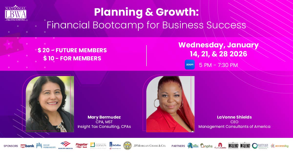 Planning & Growth: Financial Bootcamp for Business Success – NLBWA-IE + Add to Google Calendar + iCal / Outlook export 00 days 00 hours 00 minutes 00 seconds Date Jan 14 2026 Time 5:00 pm - 7:30 pm Share this event